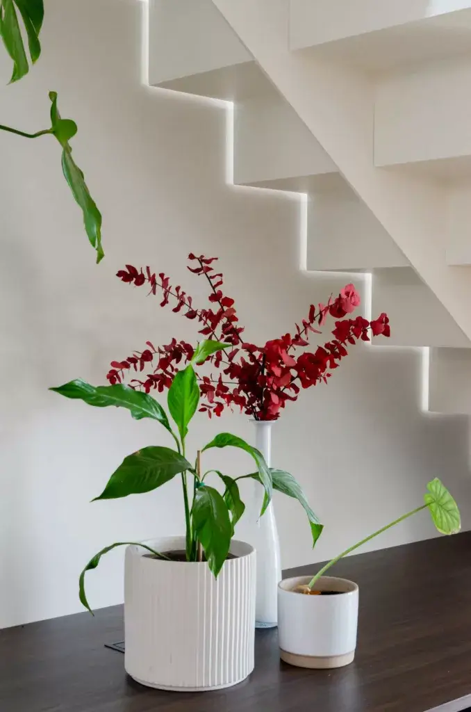 Ce projet met en scène un escalier et un meuble télé conçus comme une seule pièce de design, alliant esthétisme, fonctionnalité et savoir-faire artisanal. L’escalier en métal blanc, léger et aérien, semble flotter dans l’espace, tandis que le meuble sur mesure en bois et blanc crée une continuité visuelle et optimise le rangement. L’ensemble traduit une approche architecturale épurée où la lumière, la matière et la précision du détail s’harmonisent pour sublimer le quotidien. Cette rénovation illustre une conception sur mesure, pensée pour révéler la fluidité de la circulation et la beauté des gestes simples.